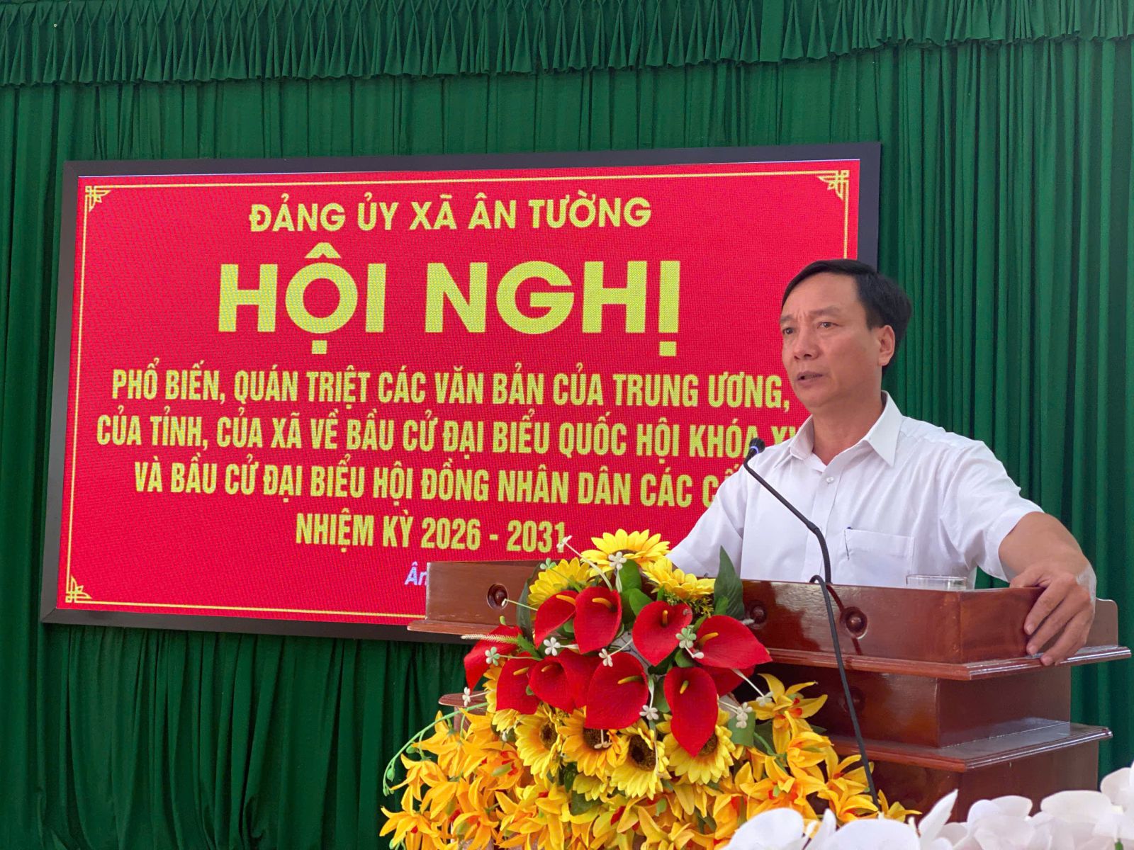 Chiều ngày 27/10/2025, tại Hội trường UBND xã Ân Tường, Đảng ủy xã tổ chức Hội nghị phổ biến, quán triệt các văn bản của Trung ương, của Tỉnh của xã về bầu cử đại biểu Quốc hội khóa XVI và bầu cử Hội đồng nhân dân các cấp nhiệm kỳ 2026 - 2031.