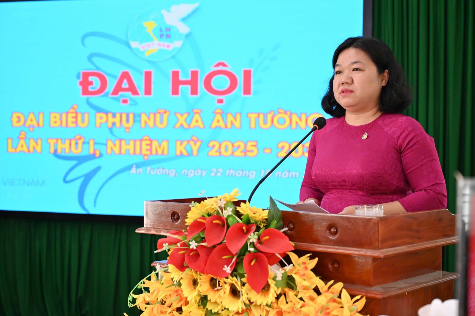 Phát biểu chỉ đạo tại Đại hội, đồng chí Phùng Thị Ngọc Tuyết – Phó Chủ tịch Hội LHPN tỉnh Bình Định ghi nhận và biểu dương những kết quả đạt được của Hội Liên hiệp Phụ nữ xã Ân Tường trong nhiệm kỳ qua, đồng thời đề nghị Hội phụ nữ xã cần tiếp tục đổi mới nội dung, phương thức hoạt động, nâng cao chất lượng sinh hoạt chi hội; chú trọng công tác phát triển hội viên; tăng cường tuyên truyền, giáo dục chính trị tư tưởng, bồi dưỡng phẩm chất đạo đức, kỹ năng sống cho phụ nữ; đẩy mạnh phong trào thi đua yêu nước gắn với học tập và làm theo tư tưởng, đạo đức, phong cách Hồ Chí Minh; phát huy vai trò, tiềm năng, sức sáng tạo của phụ nữ trong phát triển kinh tế, xây dựng đời sống văn hóa và thực hiện chuyển đổi số ở địa phương; Tiếp tục phát huy tinh thần đoàn kết, đổi mới sáng tạo, bám sát Nghị quyết Đại hội phụ nữ các cấp.