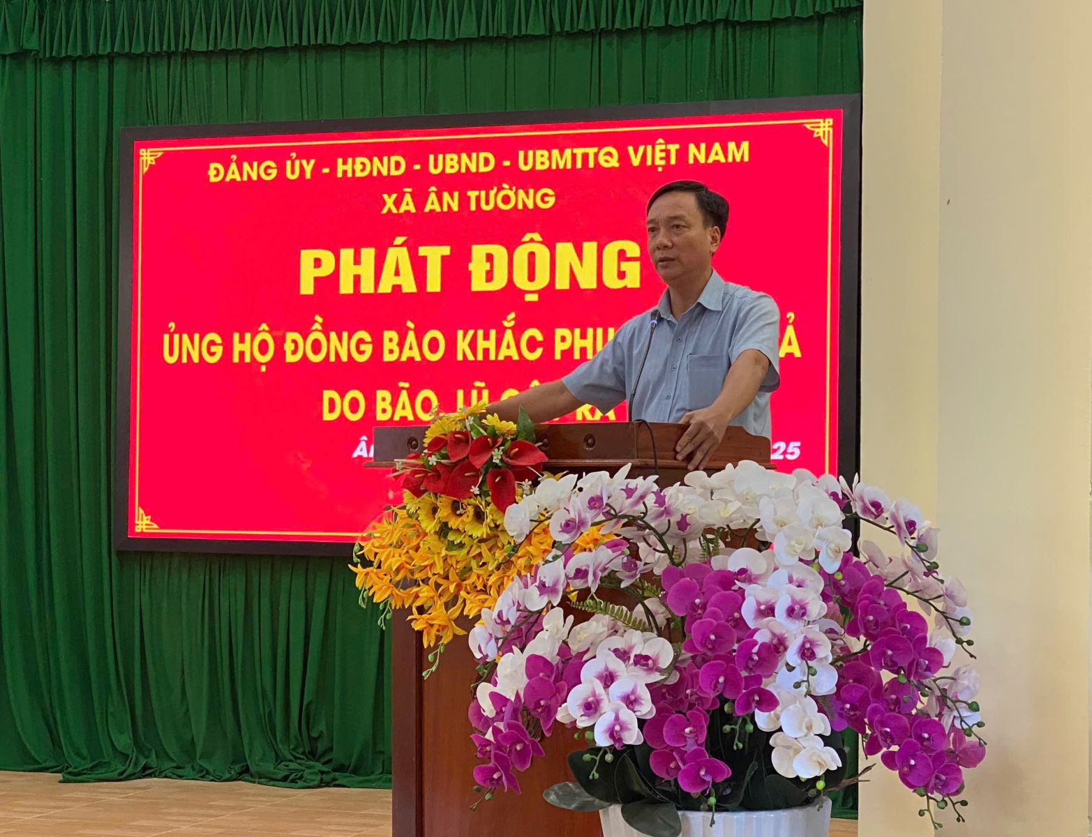 Phát biểu tại lễ phát động, đồng chí Thái Danh Hân, Bí thư Đảng ủy – Chủ tịch HĐND xã Ân Tường, kêu gọi toàn thể cán bộ, công chức, viên chức, đoàn viên, hội viên và nhân dân trong xã tiếp tục phát huy truyền thống đoàn kết, tinh thần tương thân tương ái “lá lành đùm lá rách”, tích cực ủng hộ bằng tiền, hiện vật, nhu yếu phẩm để chia sẻ với đồng bào vùng bị ảnh hưởng bởi thiên tai.